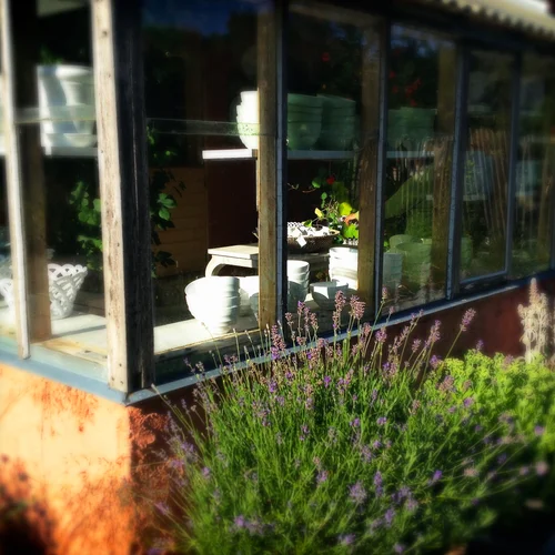 Här arbetar och bor Ingela året runt medan hennes butik är öppen dagligen juni-augusti. All produktion sker i verkstaden bakom butiken.